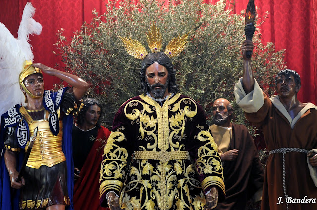 Los priostes en esta ocasión dispusieron parte del misterio tras el Señor, siempre en un primer plano en una posición distinta a la habitual cada noche del Miércoles Santo, quizás una nueva visión de este misterio que creó D. Antonio Castillo Lastrucci.